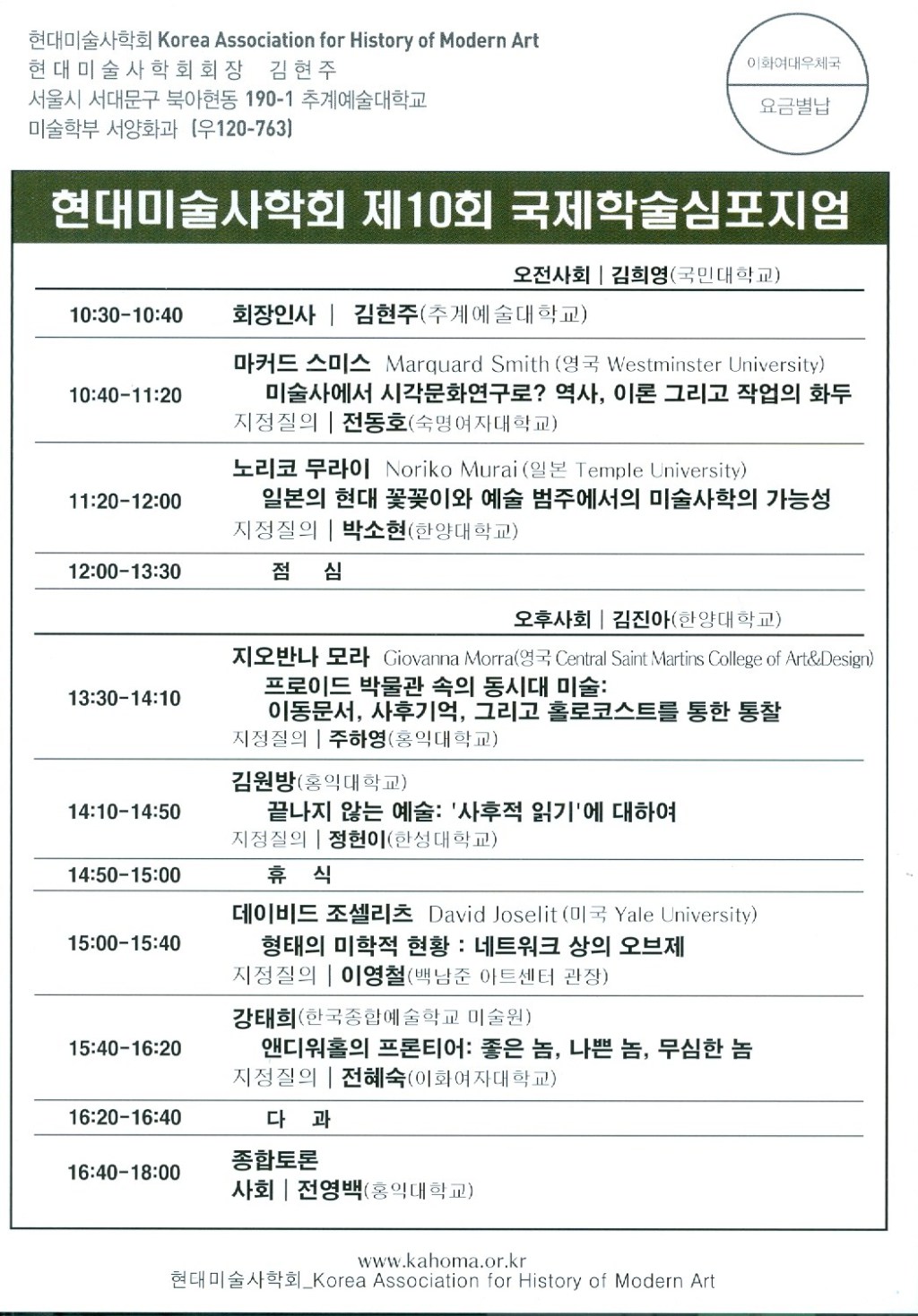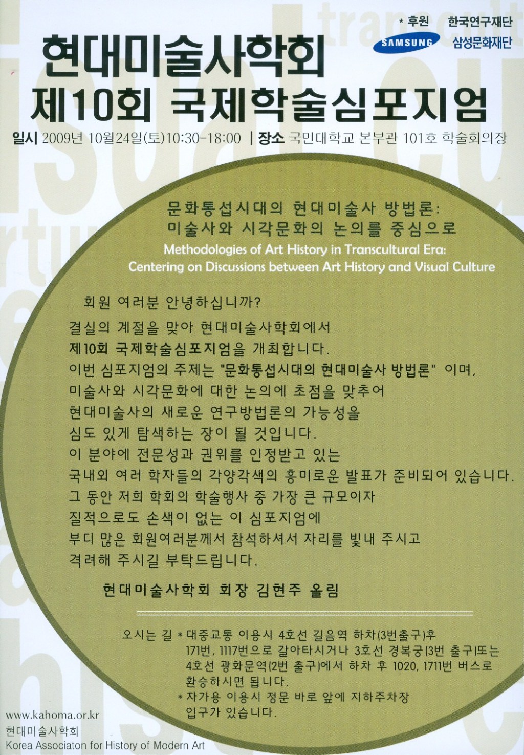주제: 문화통섭시대의 현대미술사 방법론: 미술사와 시각문화의 논의를 중심으로(Methodologies of Art History in Transcultural Era: Centering on Discussions between Art History and Visual Culture)