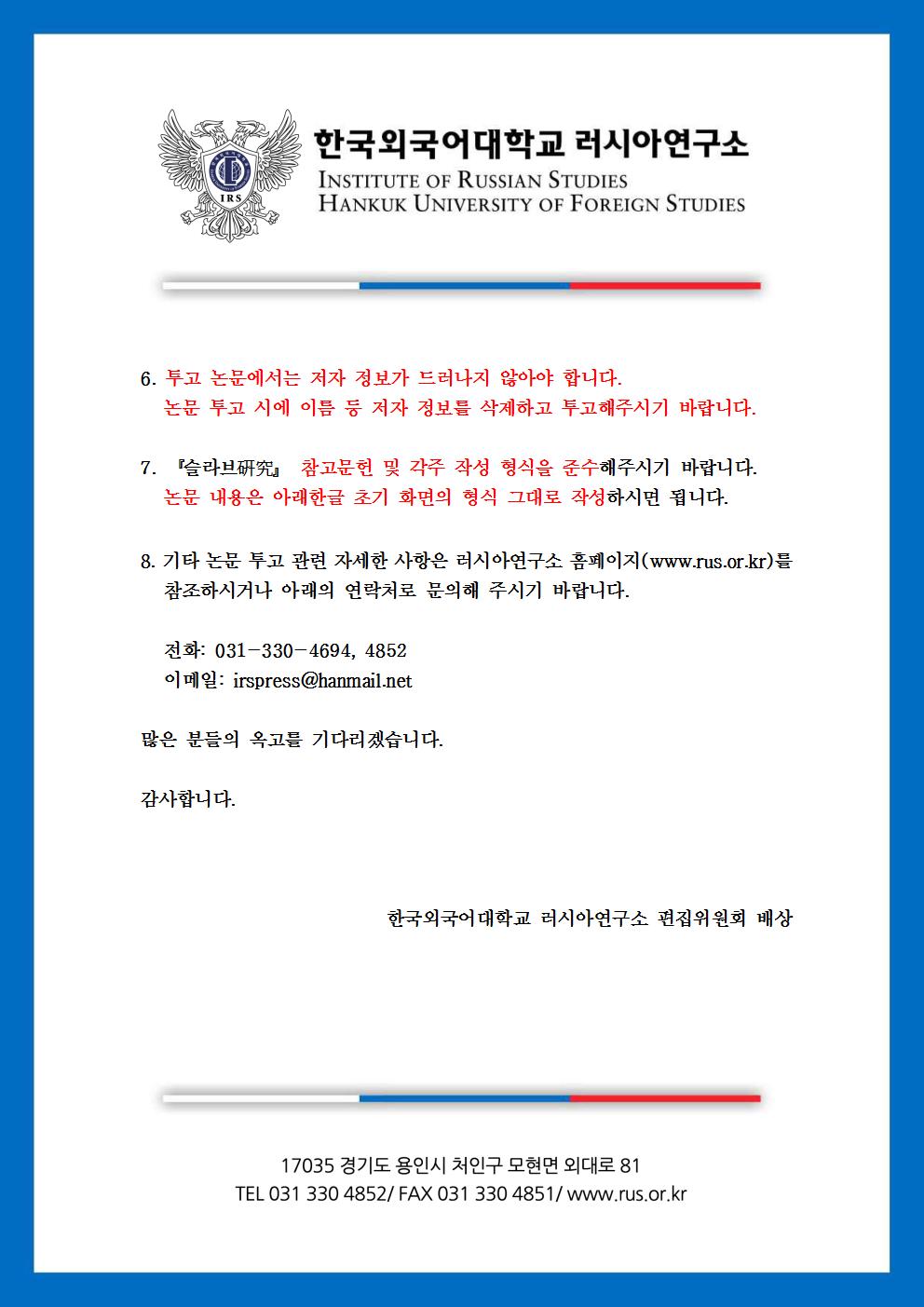 슬라브연구 제36권 2호 논문 투고 안내