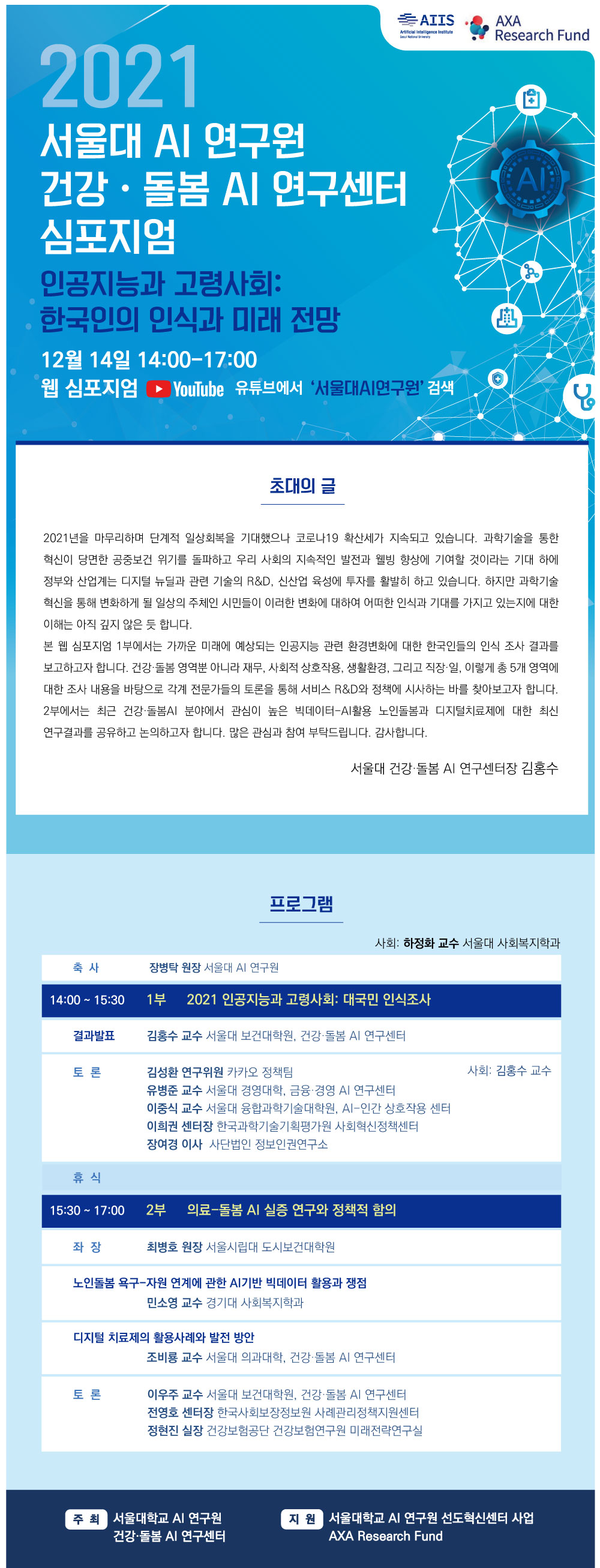 [서울대 AI 연구원] 2021 건강•돌봄 AI 연구센터 심포지엄 (12/14)