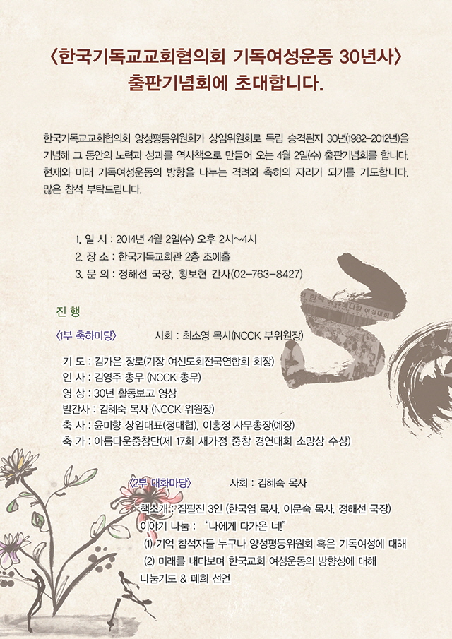 한국기독교교회협의회 기독여성 30년사 출판기념회 안내