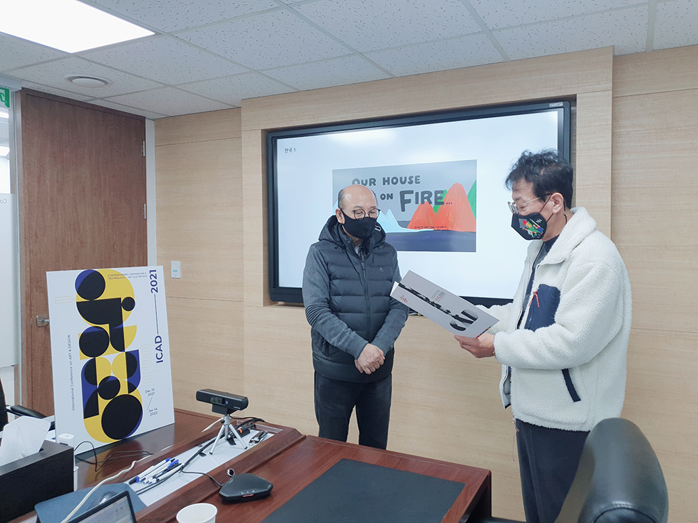 본 학회의 주최로 10개국 이상이 참가하는 ICAD 온라인국제교류전 행사의 학생부문 작품심사를 하기 위한 자리를 지난 12/11(토) 16시~18시까지 삼성역 회의실에서 가졌습니다. 학생부문 심사진행을 위해 이진구 학회장님, 박경진 연구윤리위원장님, 이중섭 심사위원님, 박재연 편집위원장님, 그리고 메스씨엔지의 이희곤 대표님이 참석해주셨습니다. 심사결과는 온라인국제교류전 행사의 홈페이지를 통해 확인가능합니다.